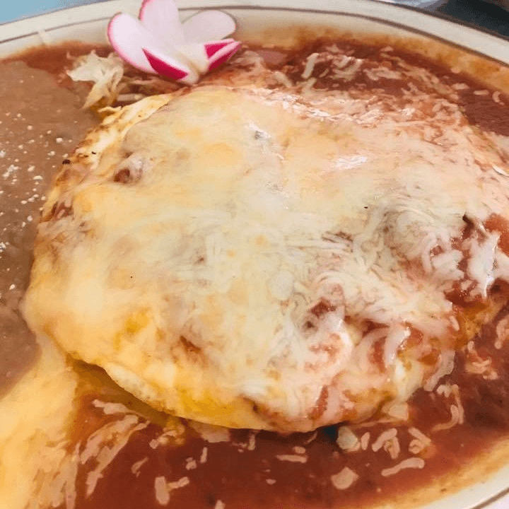 A corn or flour tortilla filled your choice of meat, rolled and smothered in our special enchilada sauce then topped with Monterey Jack cheese and baked to perfection.
