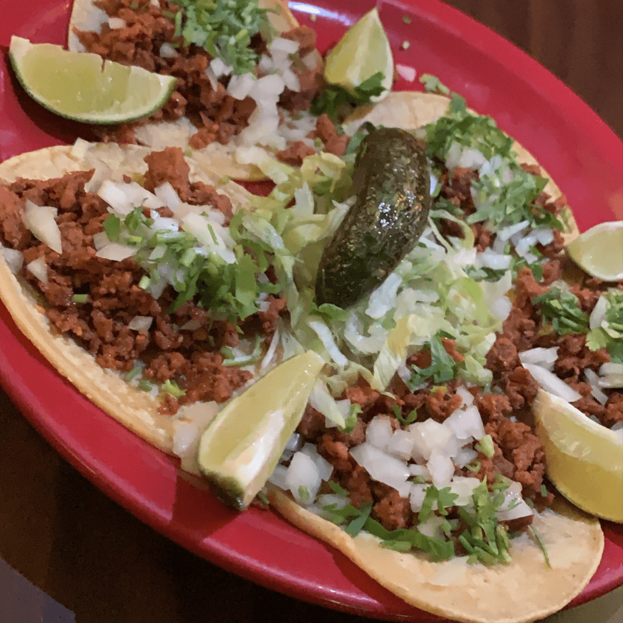 5 mini street tacos filled with your choice of meat: asada, pork adobada, carnitas, chicken or chorizo. Topped with onion, cilantro. Served with a chile toriado